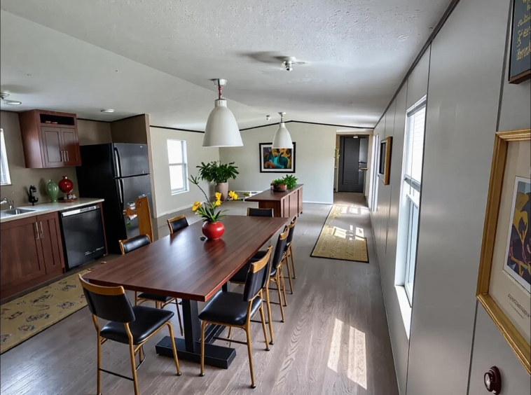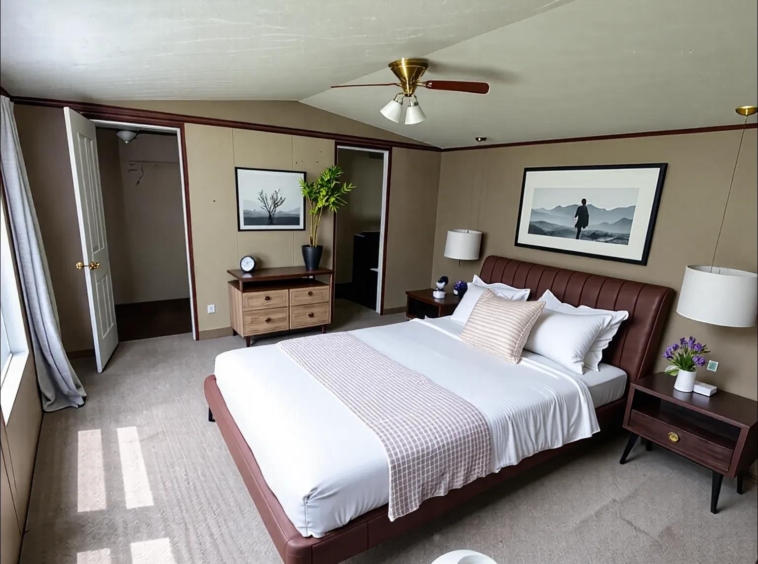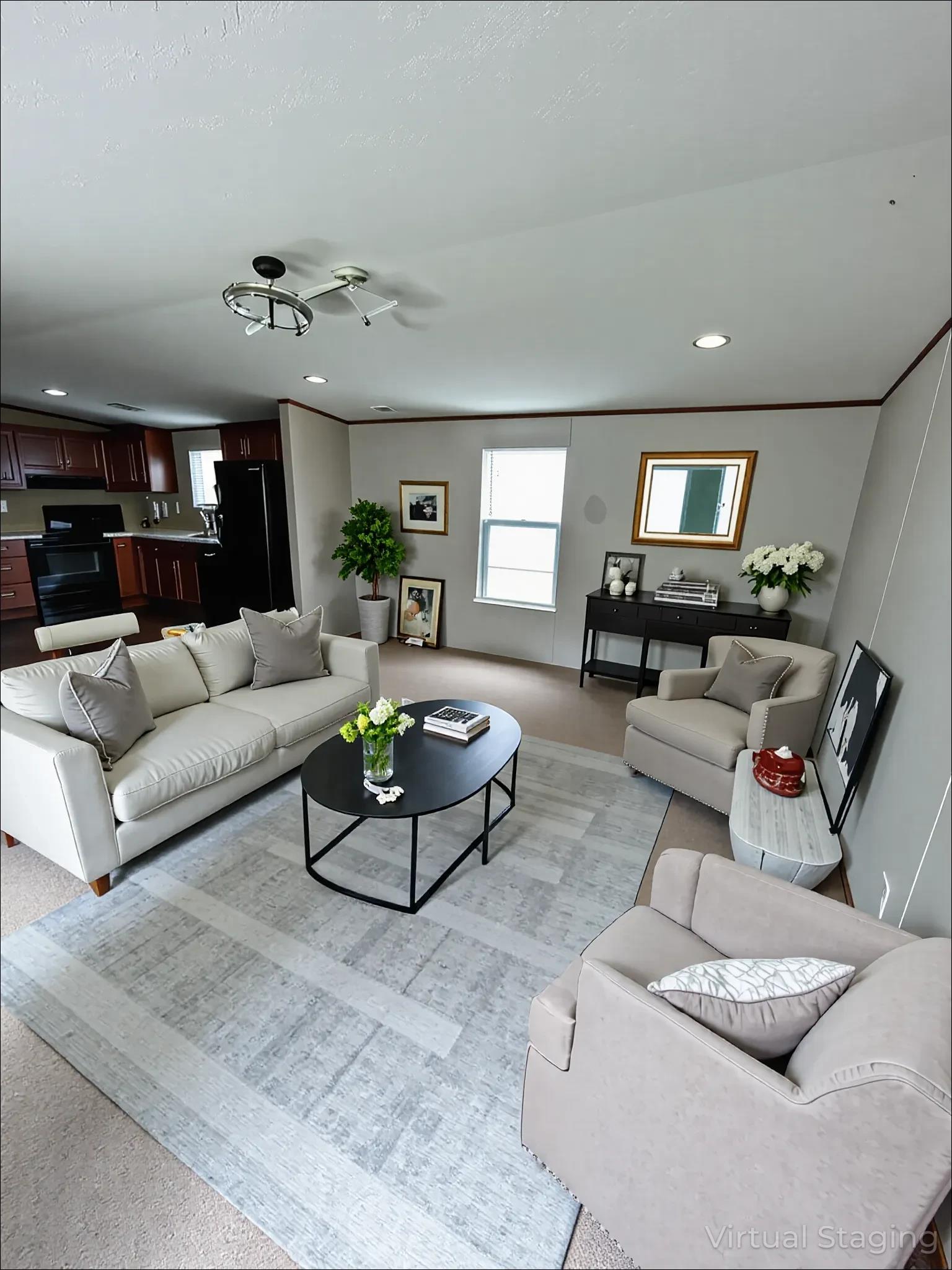 Welcome to the Juniper, a sophisticated 3-bedroom, 2-bathroom sanctuary designed for modern living at its finest. The ensuite master bedroom offers a private retreat with a generous walk-in closet, creating your personal haven after a long day. The thoughtfully designed open concept seamlessly blends the kitchen, dining, and living areas, establishing the perfect backdrop for both intimate family gatherings and entertaining friends. The gourmet kitchen provides ample counter space and storage, enhancing your culinary experience while maintaining a clean, elegant aesthetic. With strategically placed secondary bedrooms ensuring privacy and a separate utility room adding convenience to your daily routine, the Juniper harmoniously balances functionality with elegant design. Step into a home that elevates everyday living—where contemporary comfort meets timeless style. Your story begins here at the Juniper!…. and Lot rent includes Cable & Internet…a $200/month value!